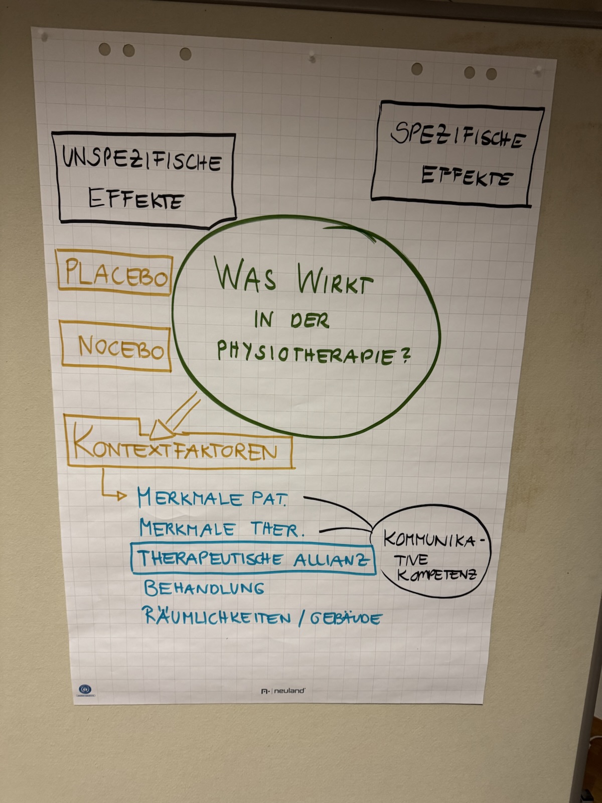 In einem zweiten Abschnitt lag der Fokus auf der Beziehungskompetenz und der Frage, wann Pacing und wann Leading in der Therapie sinnvoll sind. Pacing – also das Mitgehen mit dem Gegenüber, die Person dort abzuholen, wo sie steht, und sie in ihrem Tempo zu begleiten – sowie Leading – das Übernehmen von Führung – sind beides wichtige Aspekte in der Physiotherapie. Auch hier ging es darum, zu reflektieren, wann welches Vorgehen angewendet wird und welche Werkzeuge uns dafür zur Verfügung stehen.