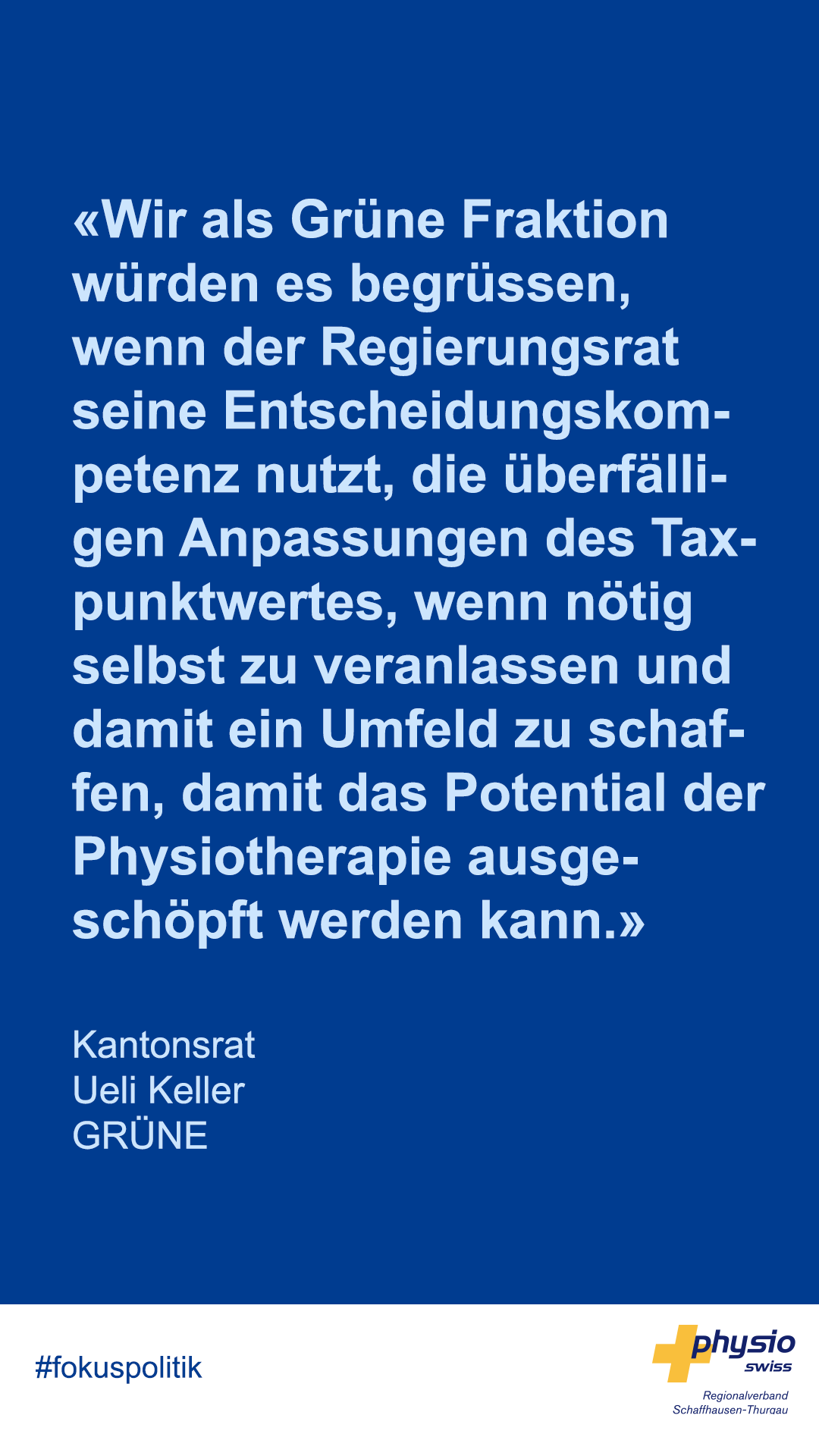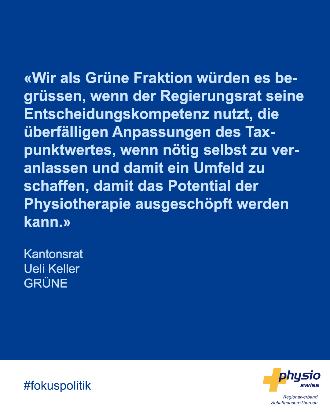 Spätestens dann, wenn sich die Tarifpartner auf einen neuen Taxpunktwert einigen, könnte der Regierungsrat diesen selbst festlegen und damit die wirtschaftliche Situation der Physiotherapeut:innen nachhaltig verbessern.