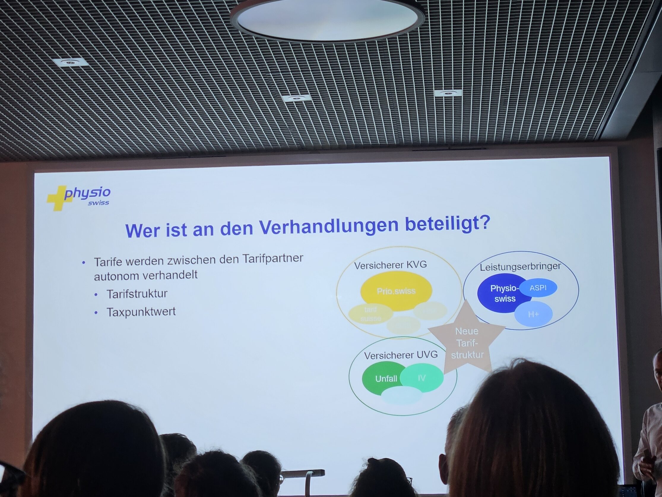 Am vergangenen Donnerstagabend fand unser Mitgliederanlass zum Thema «Hintergrund und Stand der Tarifverhandlungen (KVG)» im BBZB Luzern statt. Rund 26 Mitglieder nutzten die Gelegenheit, von Dominik Frey und Yvonne Zürcher aus dem Tarifteam von Physioswiss fundierte Einblicke in die laufenden Verhandlungen sowie in die komplexen Herausforderungen rund um das Thema zu erhalten.