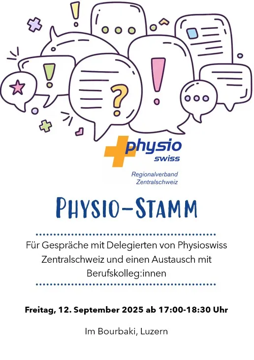 Nutze die Gelegenheit, um mit Delegierten von Physioswiss Zentralschweiz ins Gespräch zu kommen und dich mit Berufskolleg:innen auszutauschen. Deine Anliegen und Erfahrungen sind wichtig und bereichern den gemeinsamen Dialog.